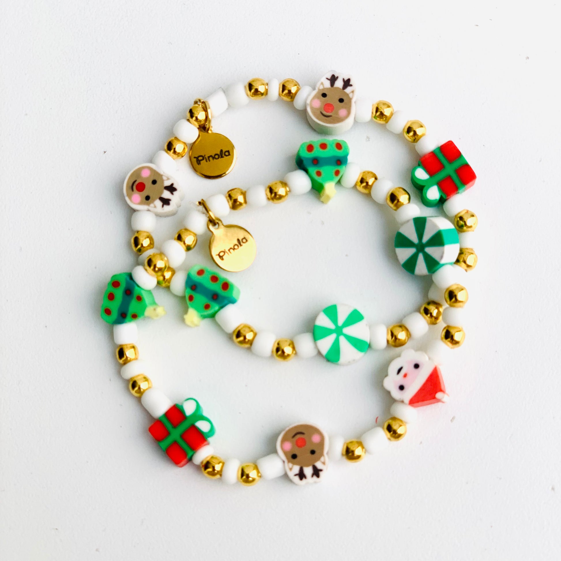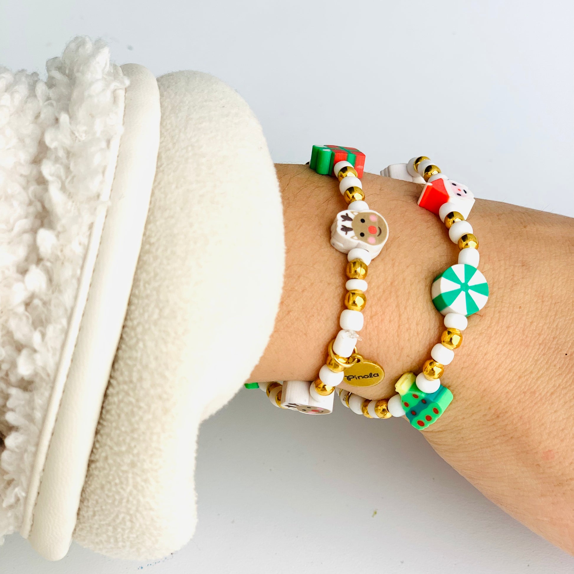 Incluye 2 pulseras con cuentas decorativas de navidad.